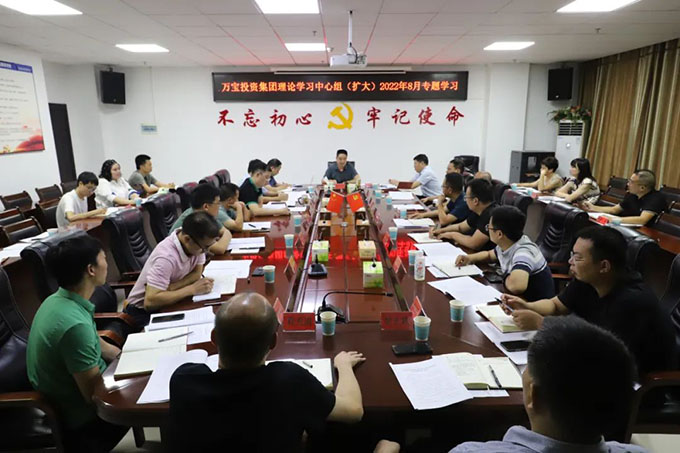8月30日,萬寶投資集團黨委書記、董事長陽文林主持召開理論學(xué)習(xí)中心組(擴大)2022年8月專題學(xué)習(xí)會議,總經(jīng)理徐業(yè)波,副總經(jīng)理謝緯,黨委委員、紀(jì)委書記葛旭華,各部室、子公司負(fù)責(zé)人以及主管以上全體人員參加。