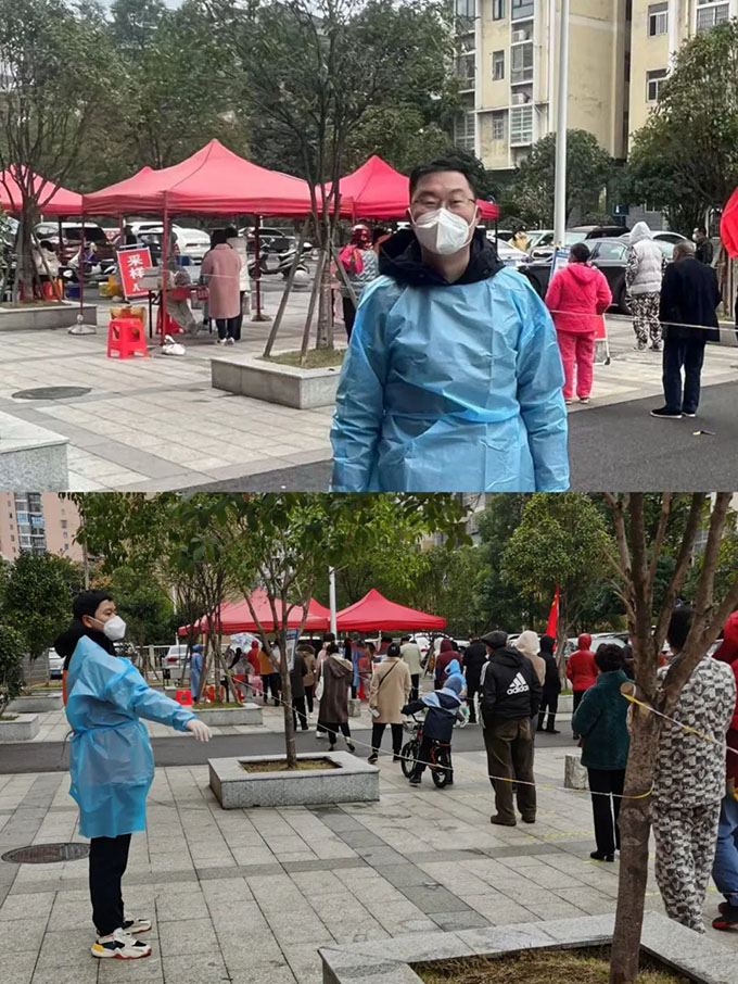 12月3日,萬寶投資集團黨員志愿者在盛世嘉園小區(qū)核酸檢測現(xiàn)場幫助社區(qū)工作人員開展場所碼登記、秩序維護等工作。