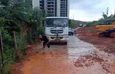 (第一時(shí)間清理清掃馬路淤泥,保障群眾安全出行)