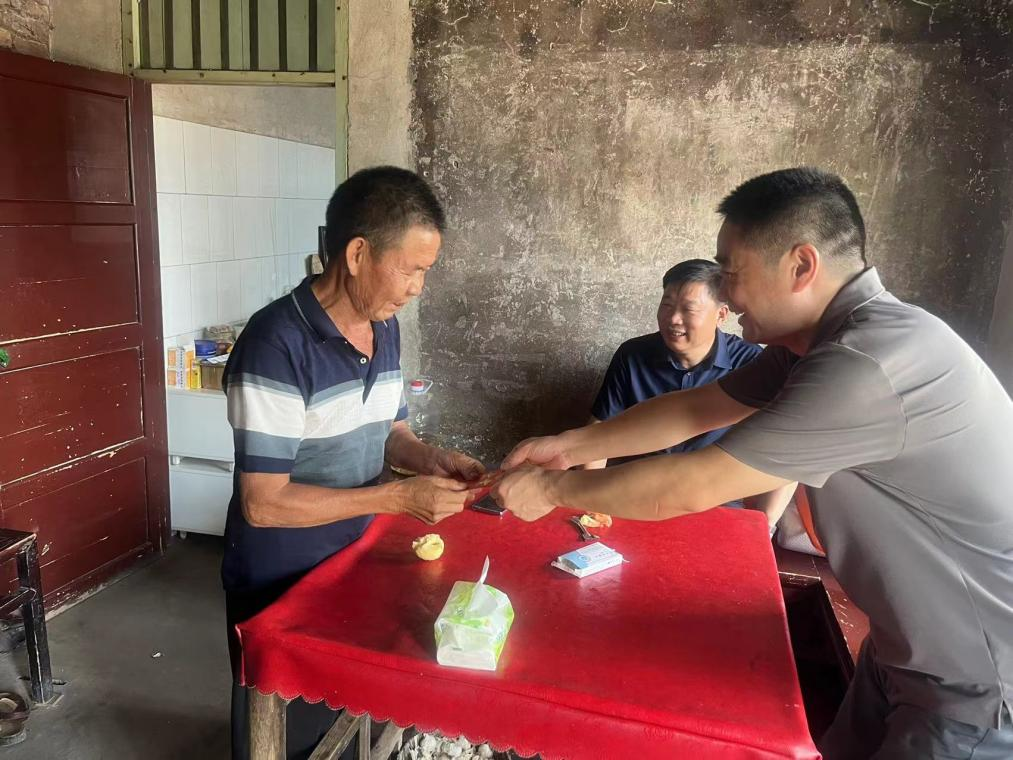 走訪完盧家村,陽文林一行馬不停蹄的趕往鄉(xiāng)村振興幫扶村—新化縣桑梓鎮(zhèn)大田村,考察集團(tuán)公司今年在大田村的幫扶項目現(xiàn)場,走訪慰問結(jié)對幫扶監(jiān)測戶,并為每一個監(jiān)測戶送上慰問金。走訪結(jié)束后,陽文林一行與鎮(zhèn)、村負(fù)責(zé)人和幫扶工作隊座談,了解幫扶工作情況,為如何做好幫扶工作助力獻(xiàn)策。