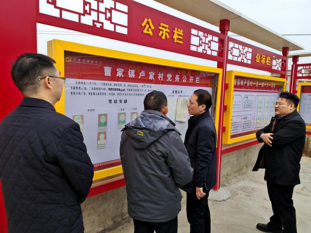 葛旭華一行到盧家村后,仔細查看了黨務公開欄,認真聽取了駐村第一書記的工作匯報,對駐村第一書記在村開展的工作給予充分肯定,對盧家村2024年10月30日完成軟弱渙散村摘牌脫帽給予表揚,同時指出了工作中存在的短板和弱項,希望再接再厲,補短板、強弱項,并就下一步黨組織建設工作提出了具體意見。